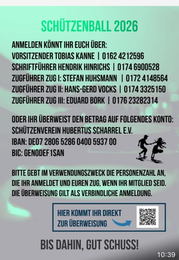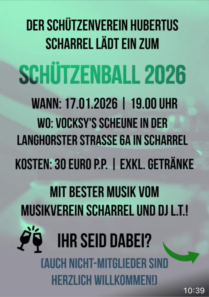 Einladung zum Schützenball 2025 Beitrag veröffentlicht:November 27, 2025 Beitrags-Kategorie:Allgemein Weitere Artikel ansehen Vorheriger BeitragWeihnachtspreisschießen 2025 Das könnte dir auch gefallen Kreisschützenfest 2025 August 22, 2025 Schützenfest Scharrel 2025 – Es geht los! Juli 10, 2025 Einladung zur außerordentlichen Generalversammlung am 11.12.2024 Dezember 1, 2024